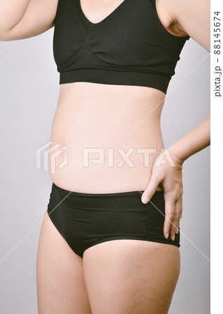 Fat woman standing and showing belly fat, Overweight obesity woman