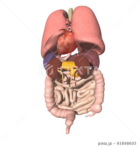 人体 背中側 内臓 肺 心臓 胃 肝臓 膵臓 腎臓 脾臓 胆嚢 小腸 大腸(3DCGイメージ)