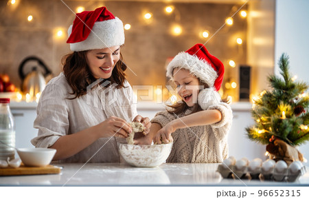 Mom and daughter they manage the white kitchen together for Christmas and new year. Family day, preparation for the holiday, learn to cook delicious pastries