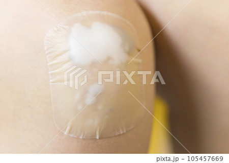 膝の傷にモイストパッドを貼る子供 キズパワーパッド