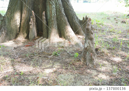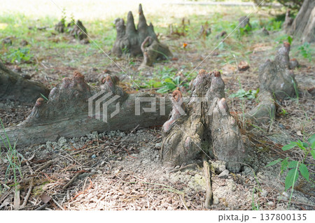ラクウショウ(ヌマスギ)の呼吸根・膝根(サイプレスの膝)