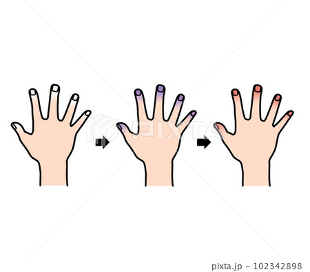 レイノー現象のイラスト・手指の血流障害の症状比較