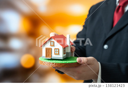 A man lays a house on a plot of land. Housing design and construction. Property development planning ensures efficient building. Investment supports residential growth and urban expansion.