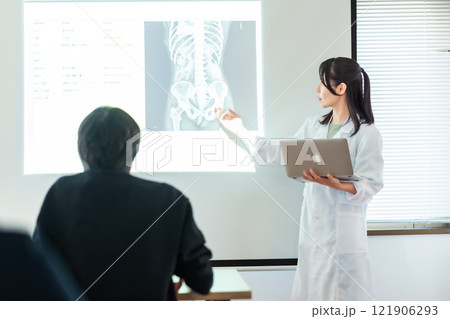 メディカルカンファレンスでレントゲンを示すドクター