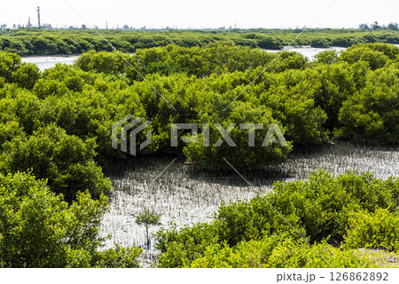 View of the Beimen Mangrove Ecological Reserve in Tainan, Taiwan. mangrove is a shrub or tree that grows mainly in coastal saline or brackish water.