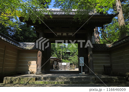 青空を背にした茨城花の寺の一つ那珂市弘願寺禅寺山門