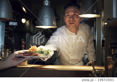 料理を出すシェフ