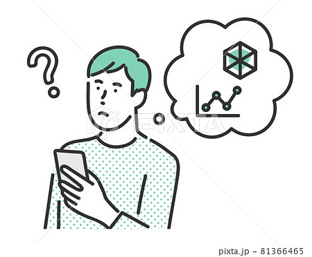 スマートフォンで自己分析を行う男性のイメージイラスト素材