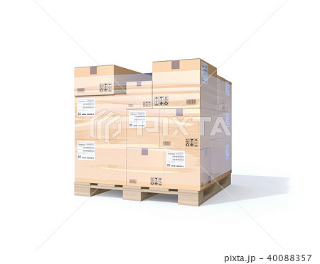 木製パレットにラップ巻きで梱包された段ボール箱のイメージ