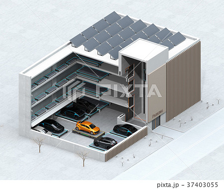 自動搬送ロボットを利用して無人駐車できる全自動駐車システムのコンセプトアイソメイメージ