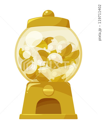 赤色のカプセルトイマシンのフラットデザインのイラスト
