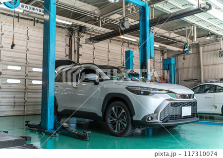 自動車整備工場・ピットにある自動車