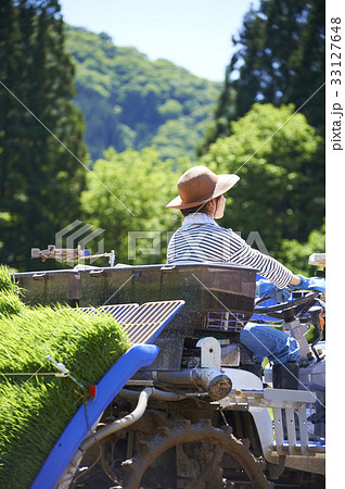 田植え機を運転する女性