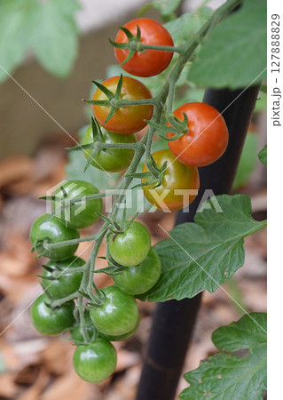 MiniTomato / 真夏の家庭菜園で育てる夏野菜,ミニトマトの実(プチトマト) - 生育途中