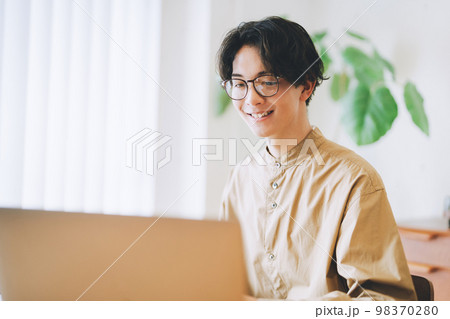 男性 パソコン リモートワーク テレワーク オンライン学習 自宅