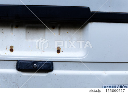 フェンスで囲われた空き地の入り口にある古びた扉(立ち入り禁止)