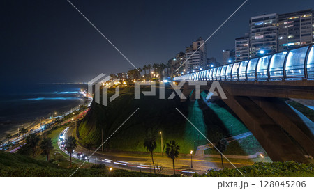 Villena Bridge with traffic and partial City view in the Background night timelapse hyperlapse, Lima, Peru.