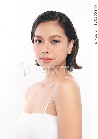 Beautiful young asian woman with clean fresh skin on white background, Face care, Facial treatment, Cosmetology, beauty and spa, Asian women portrait.