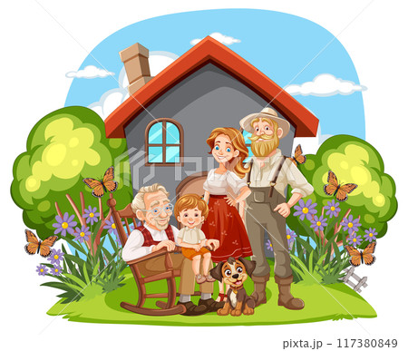 a family, middle-aged husband and wife, young adult son and teenage daughter, sitting png, isolated,