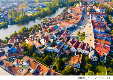 The city of Kraslava near Daugava in Latvia is surrounded by colorful autumn trees