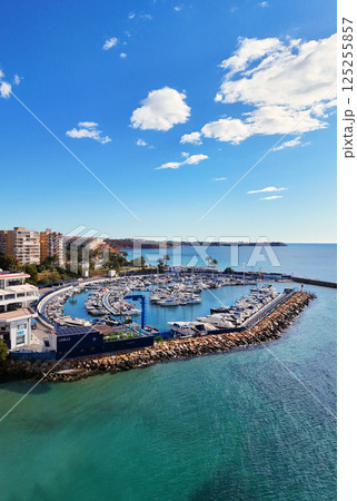 Aerial stunning coastal view of Dehesa de Campoamor on Costa Blanca