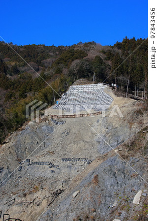 法面 有馬ダム 名栗湖 湖畔 春 新緑の風景