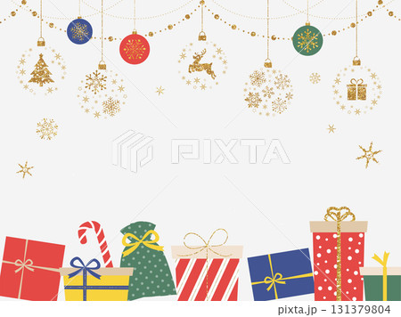 クリスマスプレゼントとオーナメントの背景白_ベクターイラスト