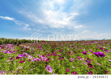 【長崎県】快晴の自然干陸地フラワーゾーンの満開のコスモス