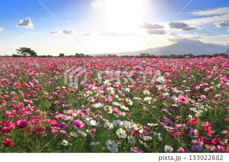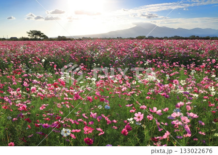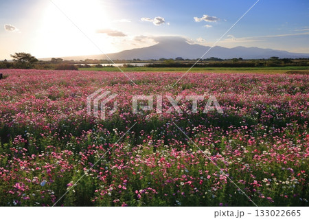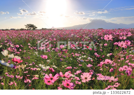 【長崎県】自然干陸地フラワーゾーンのコスモスと朝日
