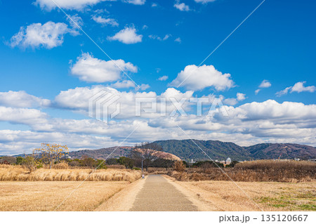 国営平城宮跡歴史公園 冬枯れの野原 奈良市