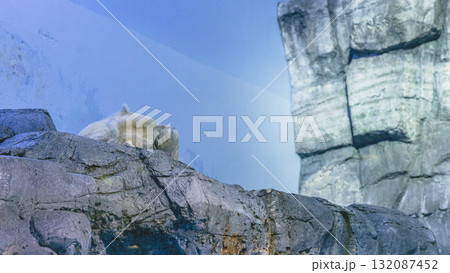 岩の上に横たわるホッキョクグマ 眠そうな白熊 八景島シーパラダイス