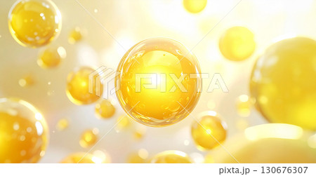 ビタミンCイメージの光輝く黄色い球体とヘルシー背景