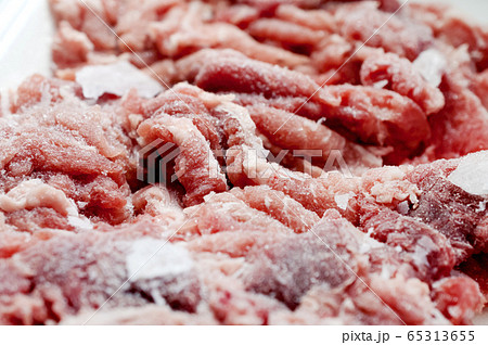 自然解凍中の冷凍した豚肉