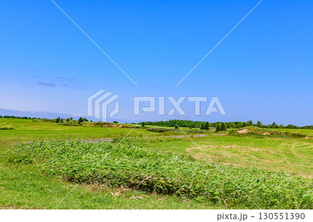 浜頓別クローバーの丘からクッチャロ湖を望む、6月の快晴の風景