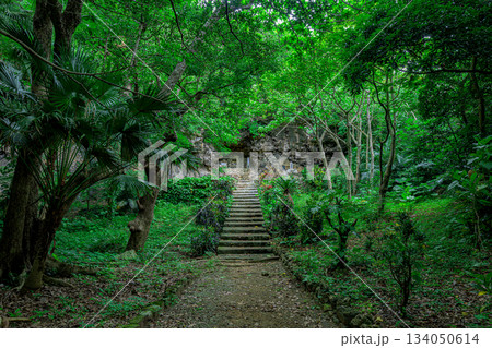 緑に包まれた石垣島の仲間満慶山英極の墓の静かな風景