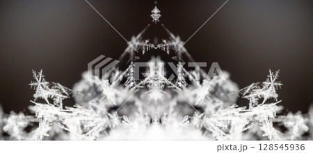 Macro snowflakes showing intricate winter details on dark background