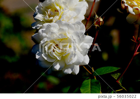 調布市深大寺元町の植物園に咲く白いバラ(モダンロ-ズ サラトガ)の花