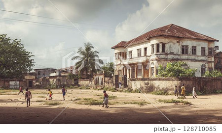 豪邸の前で遊ぶ子どもと空き地で遊ぶ子ども