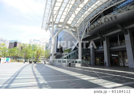 日本の東京都市景観 東京駅前・マスク姿(右側に赤レンガ駅舎)=8月5日