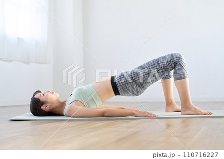 ヨガ・体幹トレーニング・筋トレをする若い女性