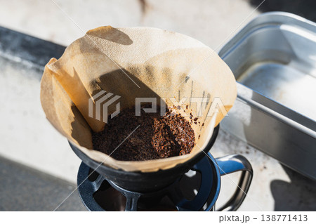 キャンプ場で楽しむ挽きたてのハンドドリップコーヒー