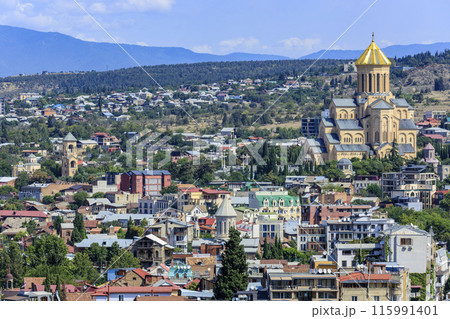 メテヒ教会と至聖三者大聖堂とトビリシ街並み