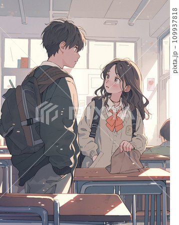 お互いを意識する高校生の男女(AI生成画像)