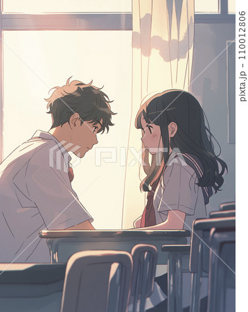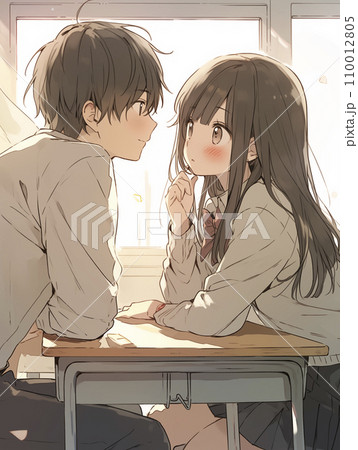 至近距離で見つめる2人 女子高生 百合(Generative AI)