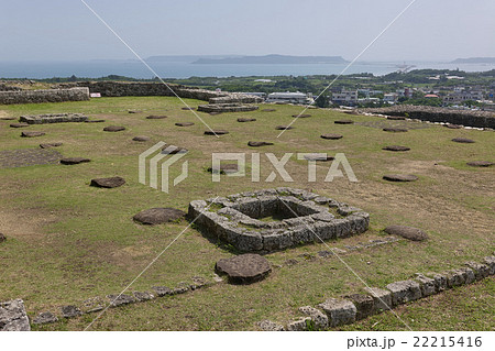 勝連城跡ニの曲輪、舎殿跡の礎石、うるま市、沖縄