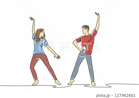 Continuous one line drawing husband and wife dancing. Cultivating the bond between couples. Relieve stress together. Captivating. International Dance Day. Single line draw design vector illustration