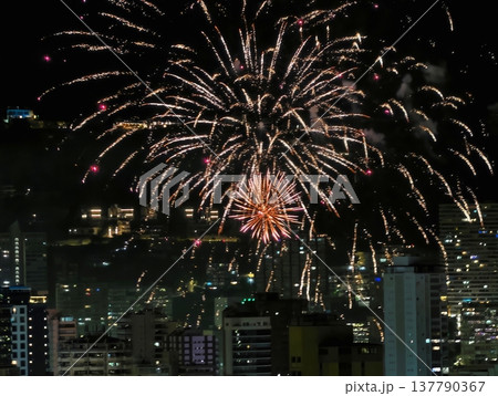 Stunning Fireworks Illuminate Night Sky During Lively Cultural Festival With Music And Lantern Displays