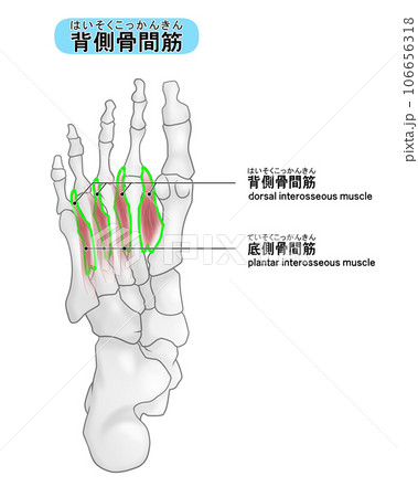 足裏の骨と筋肉のシンプルなイラスト(dorsal interosseous)