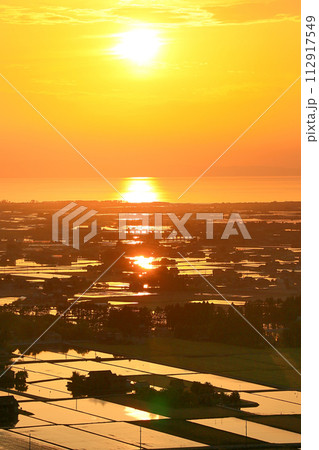 舟見城址からの水田と夕日
