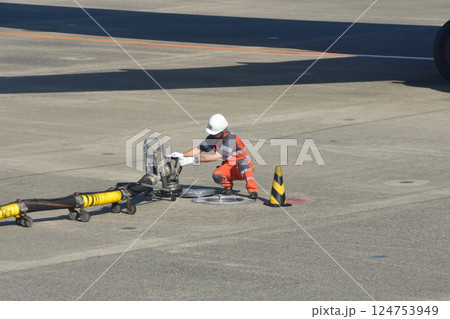 空港の風景 ハイドラントディスペンサーからの給油作業 大阪府豊中市